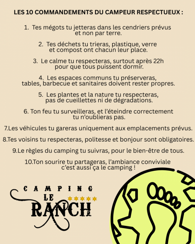 - Le Camping Le Ranch est labellisé Camping qualité. Cette charte de qualité nationale regroupe les campings se soumettant à des engagements stricts et précis ainsi qu’à des contrôles réguliers sur plus de 600 critères pour vous assurer un meilleur séjour.